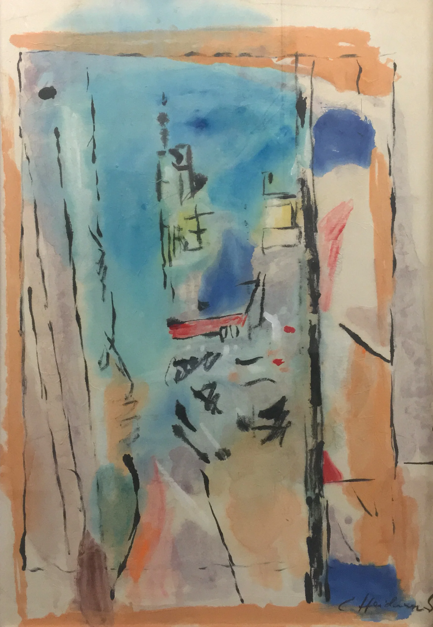 CARL HEIDENREICH, WINDOW VIEW, CIRCA 1960. MIXED MEDIA ON PAPER. 32 X 23 INCHES. COLLECTION OF THE CARL HEIDENREICH FOUNDATION.